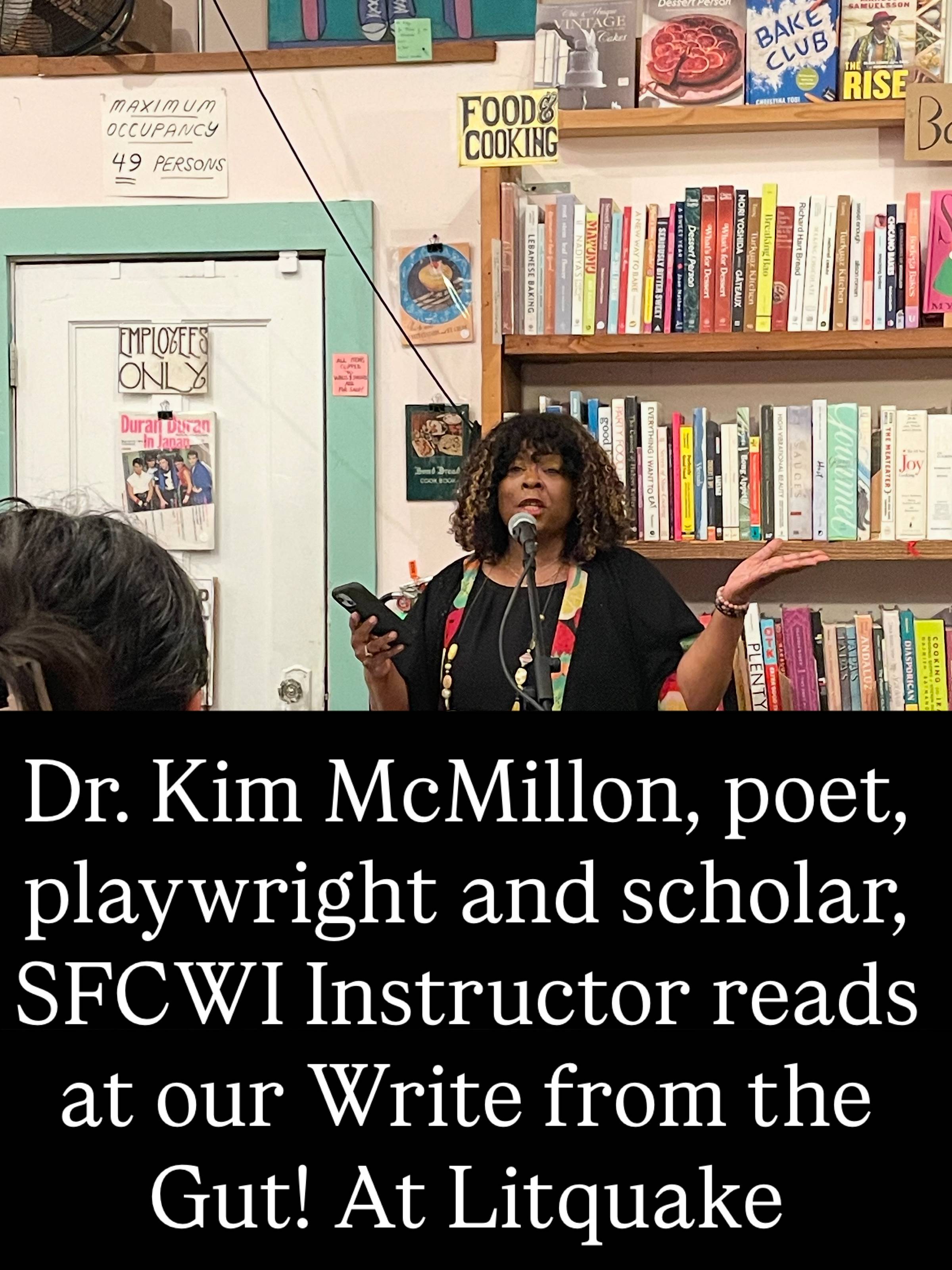 Dr. Kim McMillon is a producer, playwright, and contributor to the anthology Some Other Blues: New Perspectives on Amiri Baraka (Ohio University Press, 2021). She is also the editor of Black Fire—This Time, an anthology published by Willow Books on March 15, 2022. McMillon produced, wrote, and starred in her one-woman show, Confessions of a Thespian: When Spirit & Theatre Collide, which was directed by Margo Hall and staged at the Julia Morgan Theatre in Berkeley, CA, in March 2000. She also produced, wrote, and directed Voyages, which premiered at the Nova Theatre in San Francisco in March 1986 and was later produced at UC Berkeley's Zellerbach Playhouse in August 1987. A musical excerpt from Voyages was staged at the Merced Multicultural Arts Center in February 2023 as part of their Black History Month programming. McMillon's children's book, The Healing Book of Me, is set to be published in late September 2025. Additionally, her essay titled "Ancestor as Refugee" will be published in the SAGE Encyclopedia of Refugee Studies in September 2025.